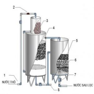 – Nước sau khi đã được oxi hoá được dẫn bằng bơm áp lực (hoặc bằng trọng lực) tới bể lọc. Bể lọc có thể là bể lọc áp lực hoặc bể lọc trọng lực tuỳ theo quy mô và năng suất lọc của hệ thống. Vật liệu lọc thường sử dụng là cát thạch anh, than hoạt tính, cát mangan, cát ODM … tuỳ theo chất lượng nước đầu vào và yêu cầu về chất lượng nước sau lọc để lựa chọn vật liệu lọc cho phù hợp.